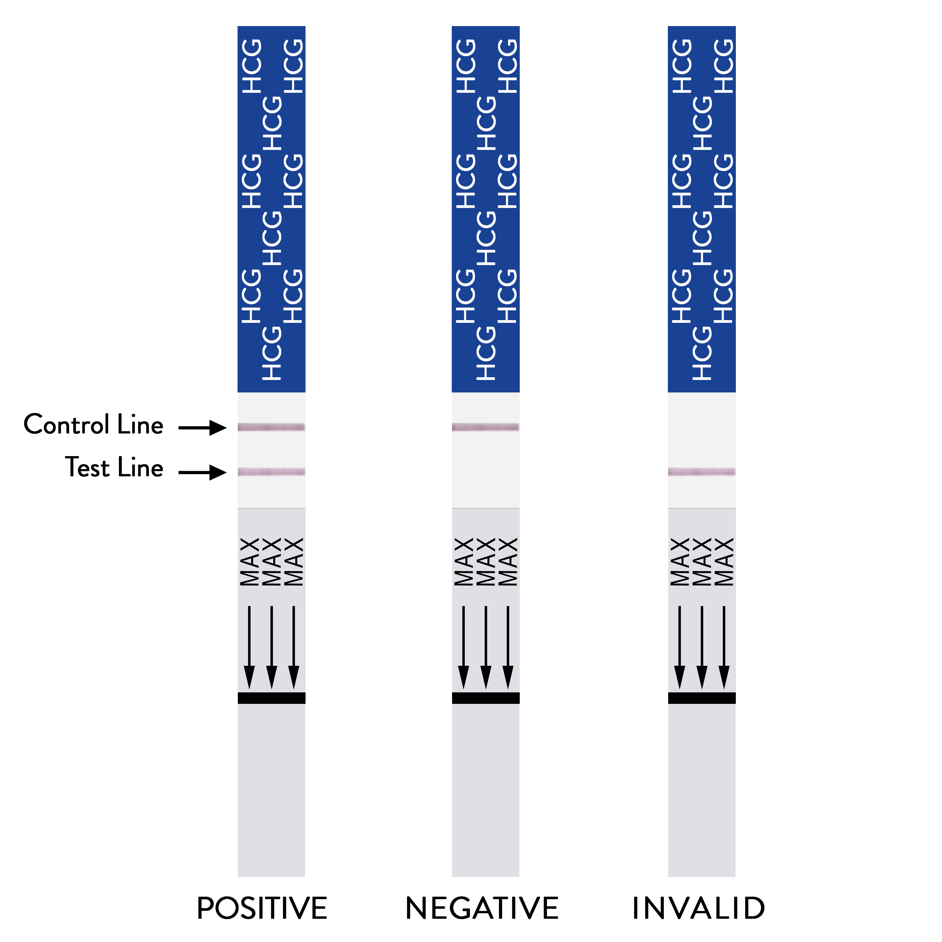 Positive And Negative Test Cassette Strips For Analysis Of Hcg
